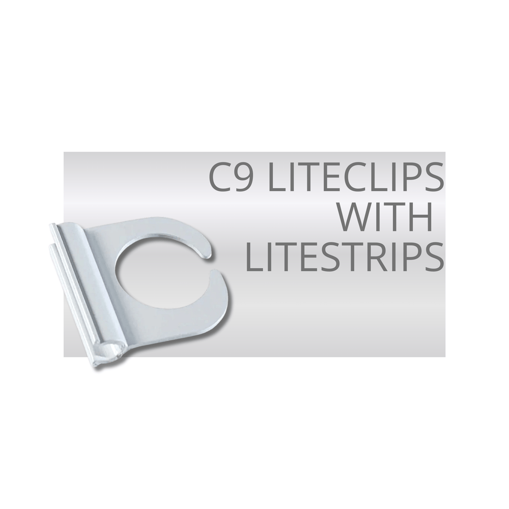 Simplify your light installations with our C9 or C7 LiteClips with LiteStrips kit. Each set combines a durable LiteClip for securing bulbs with a flexible LiteStrip that provides a clean mounting surface on gutters, shingles or other surfaces.
